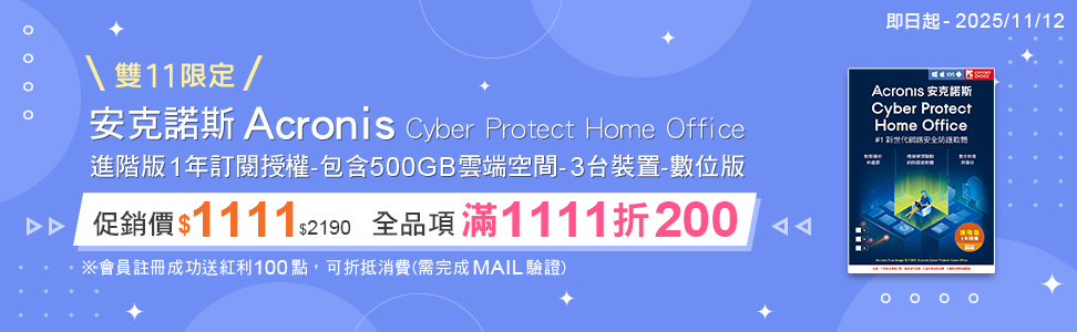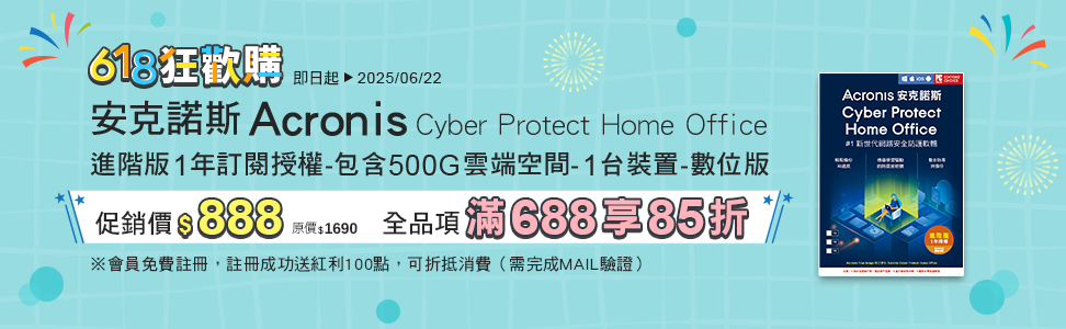 安克諾斯Acronis Cyber Protect Home Office 標準版1年訂閱授權-1台裝置-數位版