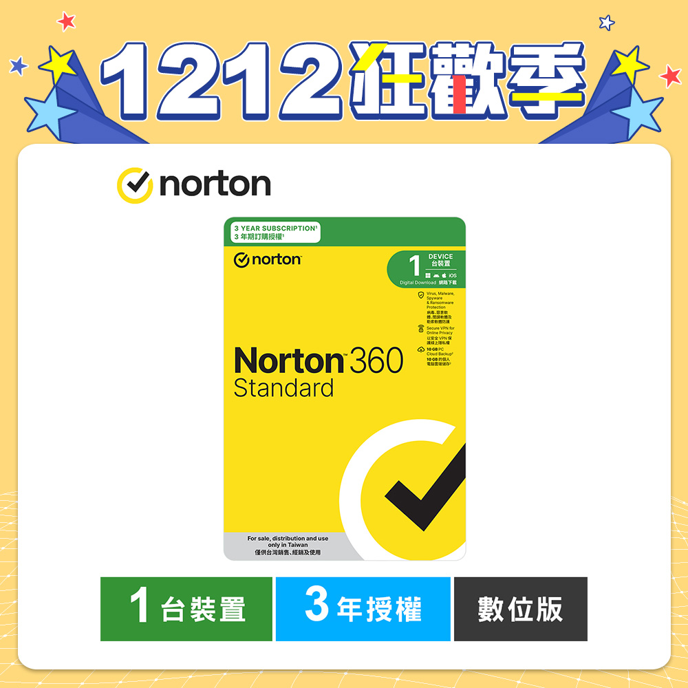 諾頓 360 入門版-1台裝置3年授權-數位版