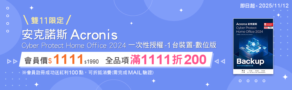 安克諾斯Acronis Cyber Protect Home Office 2024 一次性授權-1台裝置-數位版