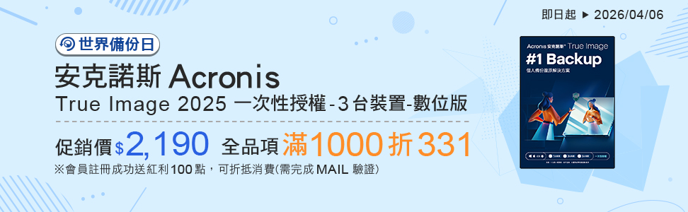 安克諾斯Acronis True Image 2025一次性授權-1台裝置-數位版
