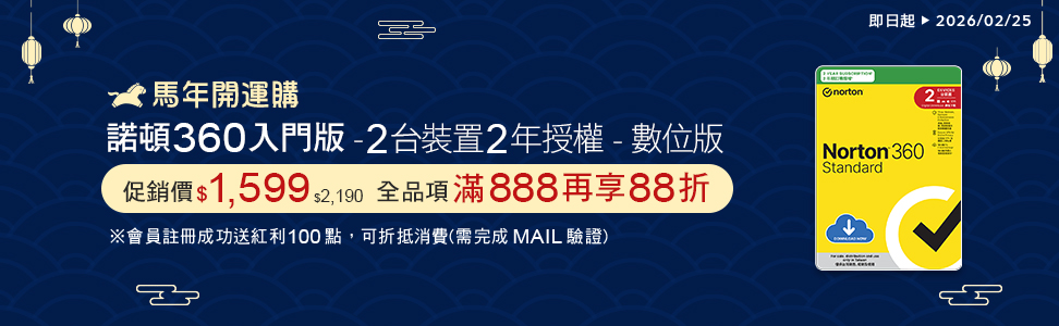 諾頓 360 入門版-2台裝置2年授權-數位版