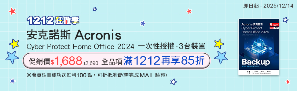 安克諾斯Acronis Cyber Protect Home Office 2024 一次性授權-3台裝置-數位版