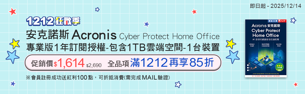 安克諾斯Acronis Cyber Protect Home Office 標準版1年訂閱授權-1台裝置-數位版