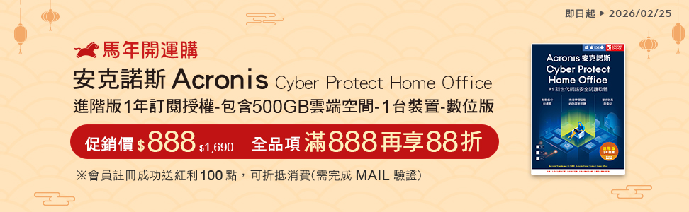 安克諾斯Acronis Cyber Protect Home Office 進階版1年訂閱授權-包含500GB雲端空間-1台裝置-數位版