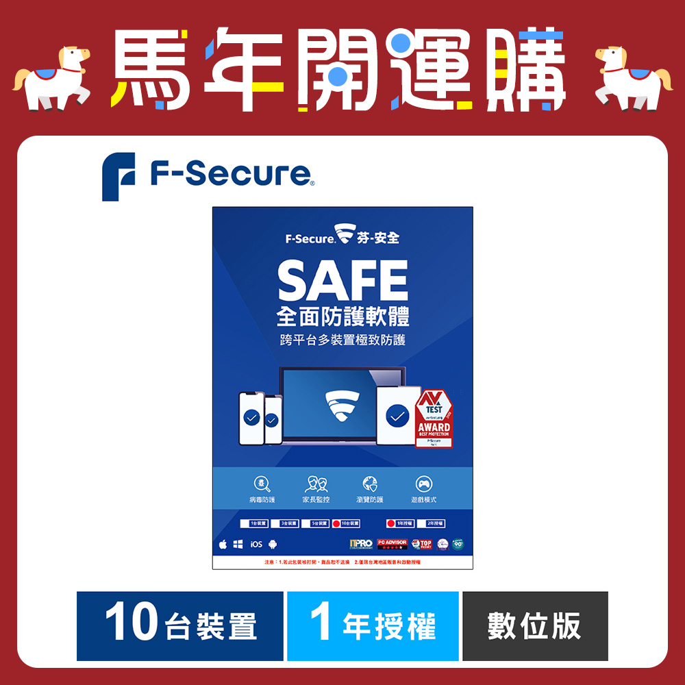 F-Secure SAFE 全面防護軟體-10台裝置1年授權-數位版