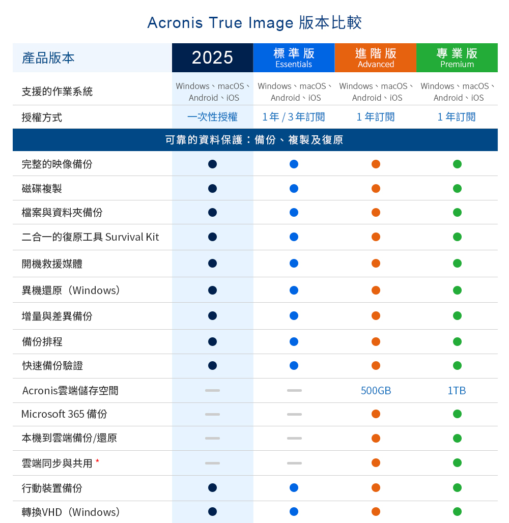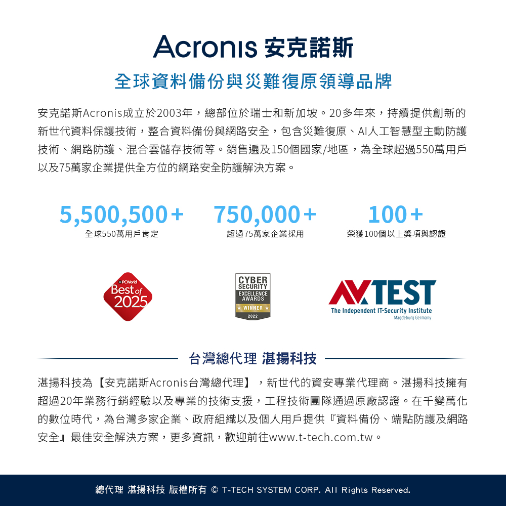 安克諾斯Acronis True Image 2025 一次性授權-5台裝置-盒裝版